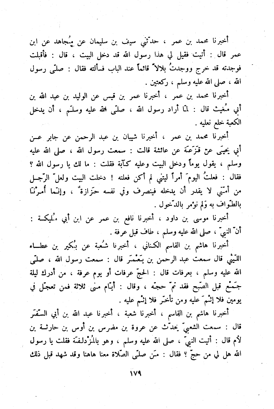 أَخْبَرَنَا مُوسَى بْنُ دَاوُدَ، أَخْبَرَنَا نَافِعُ بْنُ عُمَرَ، عَنِ ابْنِ أَبِي مُلَيْكَةَ: «§أَنَّ النَّبِيَّ صلّى الله عليه وسلم طَافَ قَبْلَ عَرَفَةَ»