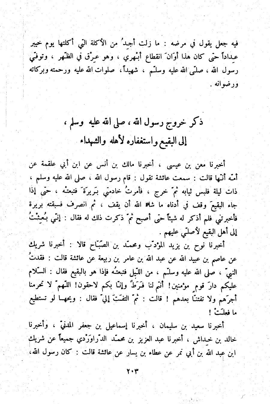 §ذِكْرُ خُرُوجِ رَسُولِ اللَّهِ صلّى الله عليه وسلم إِلَى الْبَقِيعِ وَاسْتِغْفَارِهِ لِأَهْلِهِ وَالشُّهَدَاءِ