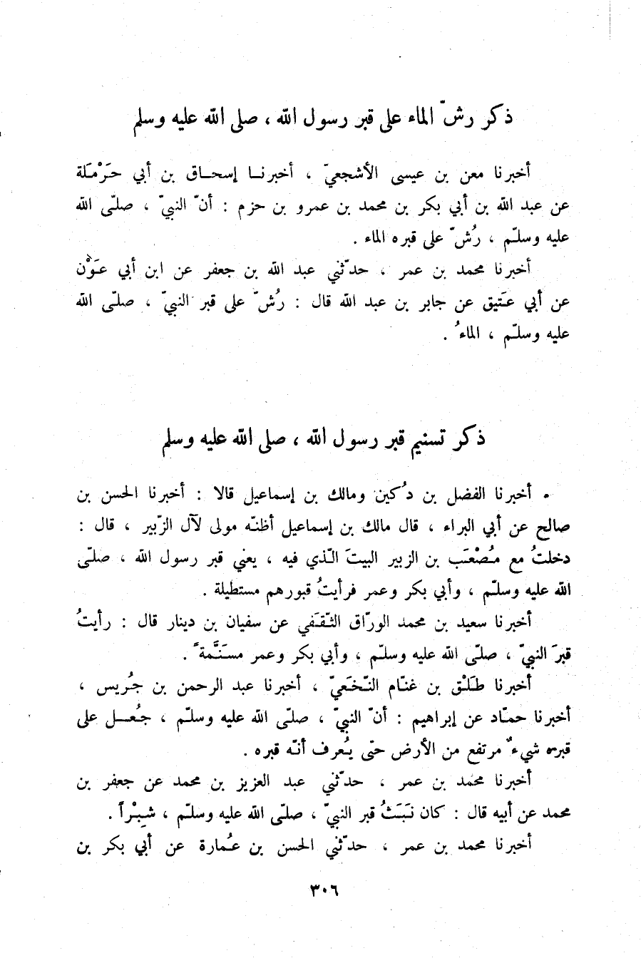 §ذِكْرُ تَسْنِيمِ قَبْرِ رَسُولِ اللَّهِ صلّى الله عليه وسلم