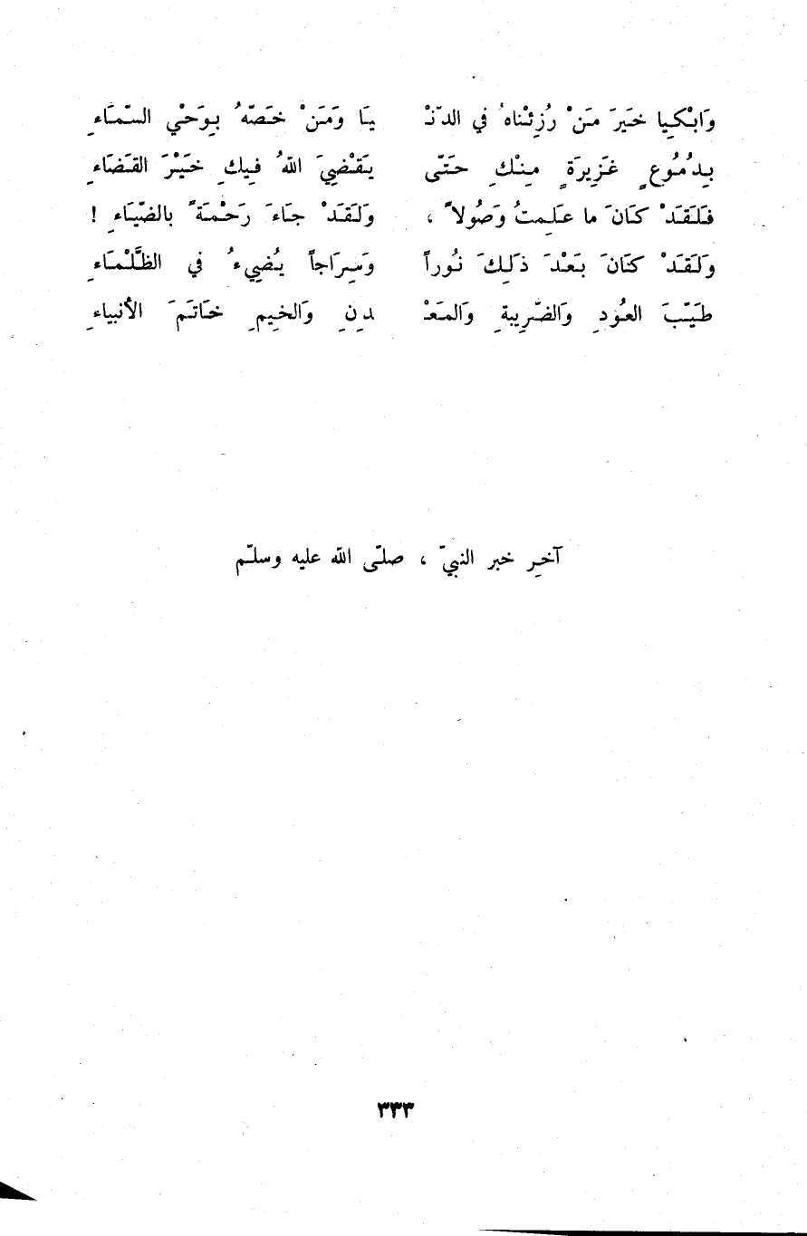 طَيِّبَ الْعُودِ وَالضَّرِيبَةِ وَالْمَعْـ ـدِنِ وَالْخِيمِ خَاتَمَ الْأَنْبِيَاءِ. آخِرُ خَبَرِ النَّبِيِّ صلّى الله عليه وسلم