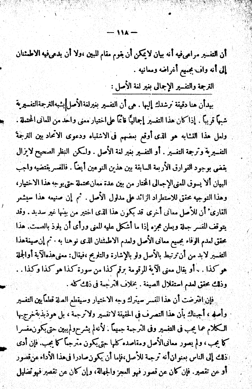 الترجمة والتفسير الإجمالي بغير لغة الأصل: