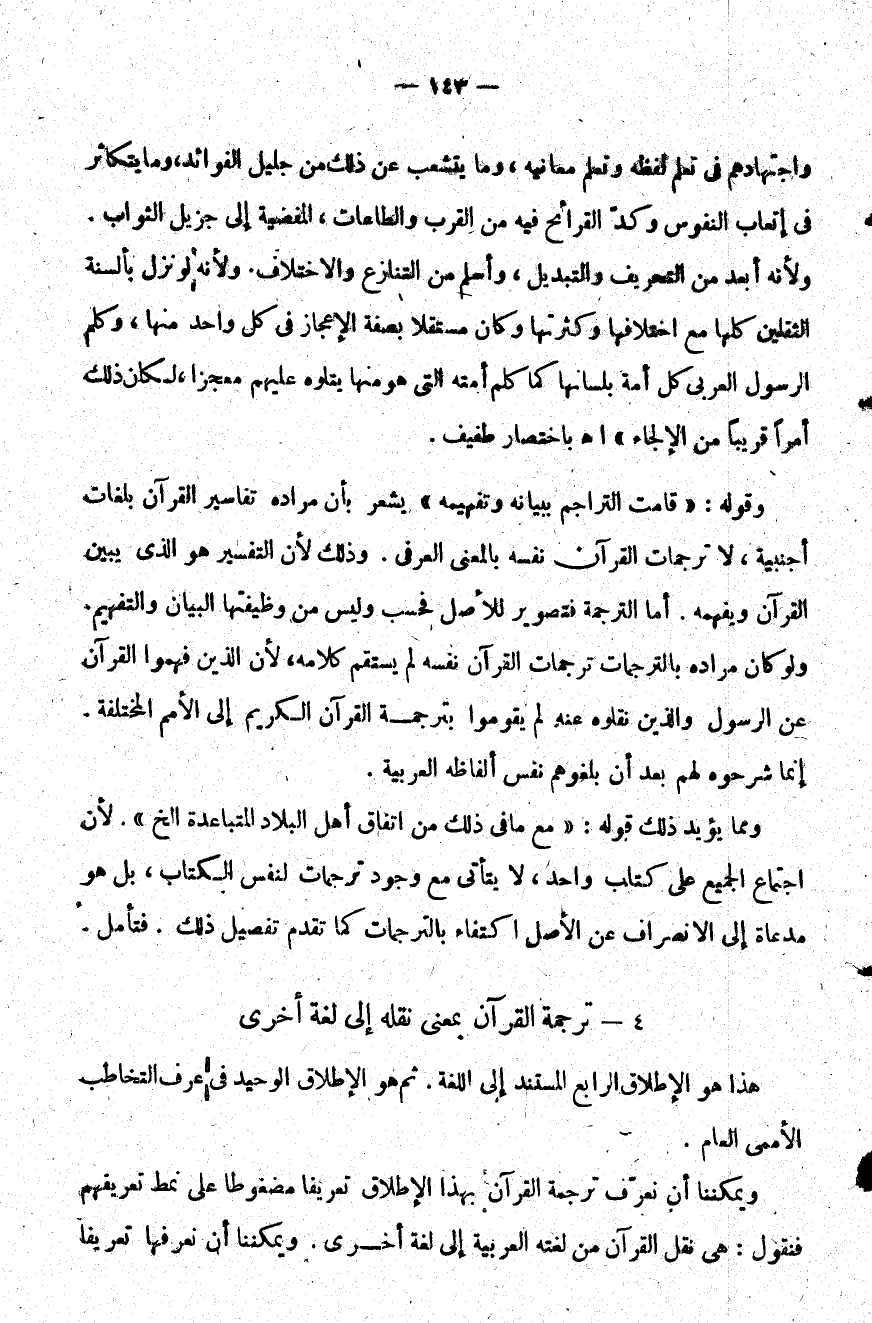 4 - ترجمة القرآن بمعنى نقله إلى لغة أخرى