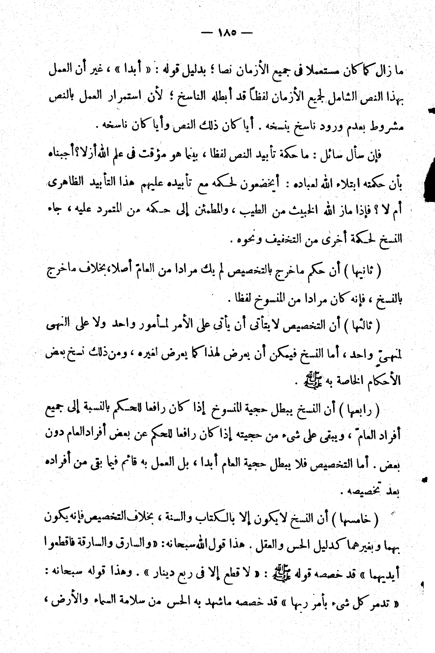 ثانيها أن حكم ما خرج بالتخصيص لم يك مرادا من العام أصلا بخلاف ما خرج بالنسخ فإنه كان مرادا من المنسوخ لفظا.
