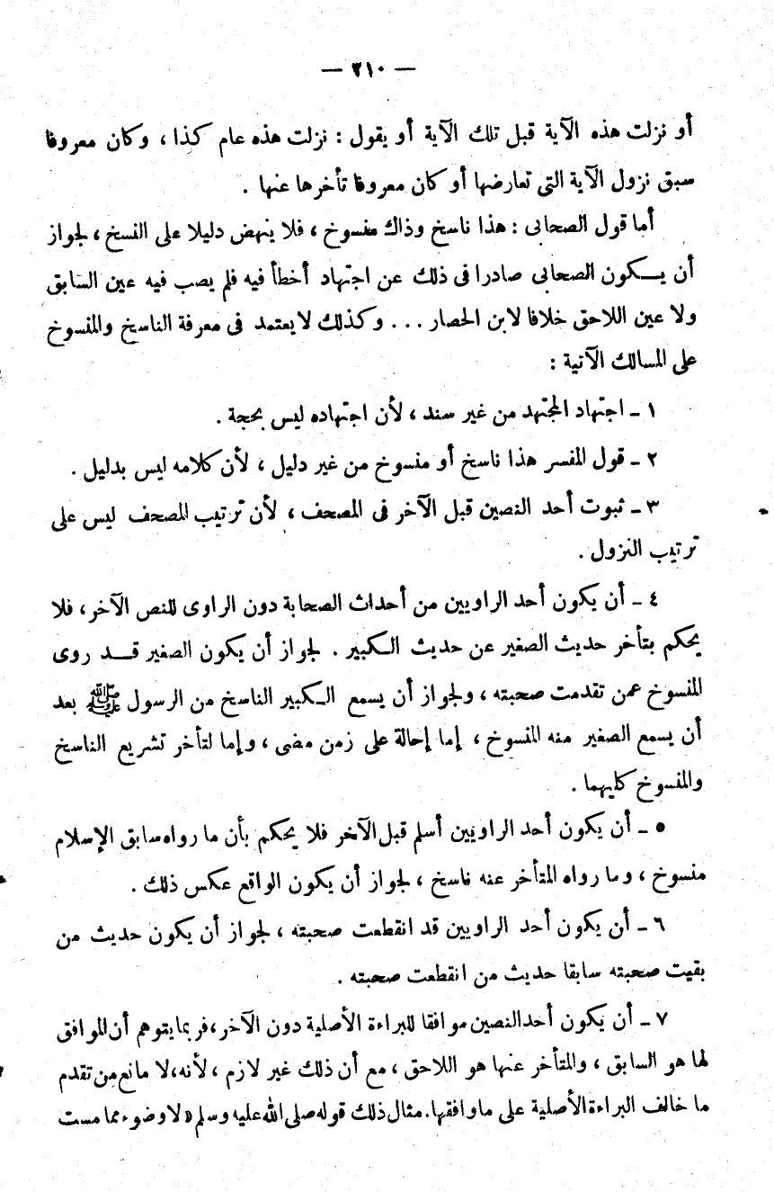 5 - أن يكون أحد الروايين أسلم قبل الآخر فلا يحكم بأن ما رواه سابق الإسلام منسوخ وما رواه المتأخر عنه ناسخ لجواز أن يكون الواقع عكس ذلك.