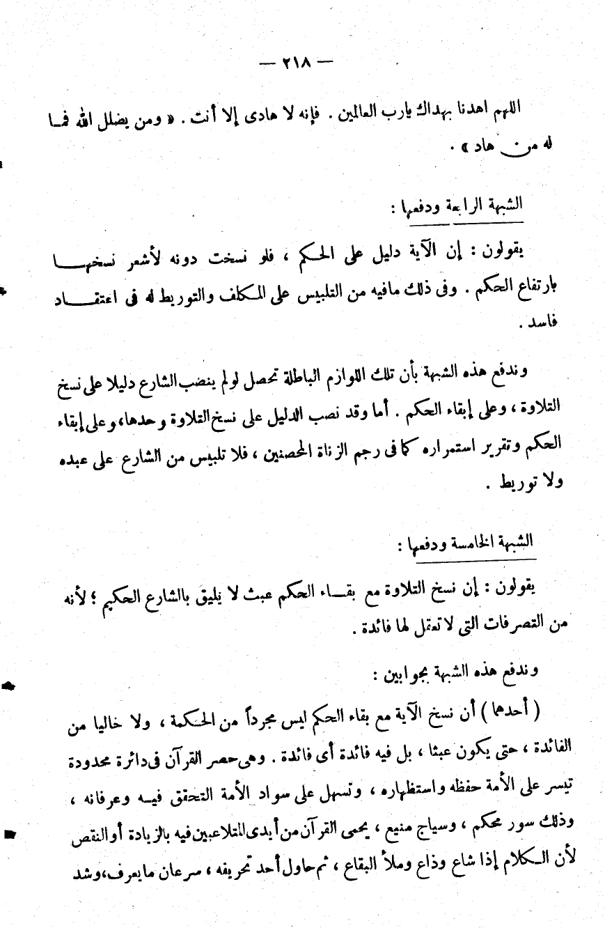 وندفع هذه الشبهة بان تلك اللوازم الباطلة تحصل لو لم ينصب الشارع دليلا على نسخ التلاوة وعلى إبقاء الحكم أما وقد نصب الدليل على نسخ التلاوة وحدها وعلى إبقاء الحكم وتقرير استمراره كما في رجم الزناة المحصنين فلا تلبيس من الشارع على عبده ولا توريط.