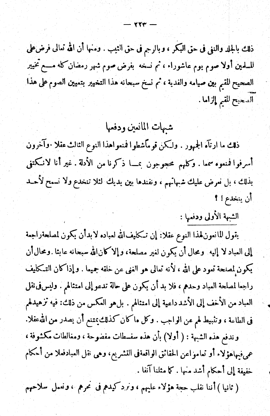 ذلك ما ارتآه الجمهور ولكن قوما شطوا فمنعوا هذا النوع الثالث عقلا وآخرون أسرفوا فمنعوه سمعا وكلهم محجوجون بما ذكرنا من الأدلة غير أنا لا نكتفي بذلك بل نعرض عليك شبهاتهم ونفندها بين يديك لئلا تنخدع ولا نسمح لأحد أن ينخدع!؟