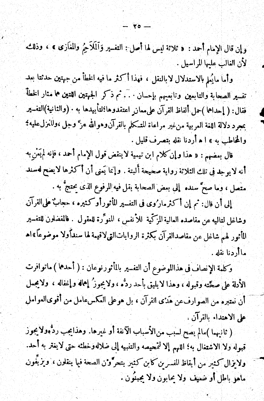 وإن قال الإمام أحمد ثلاثة ليس لها أصل التفسير والملاحم والمغازي وذلك لأن الغالب عليها المراسيل.