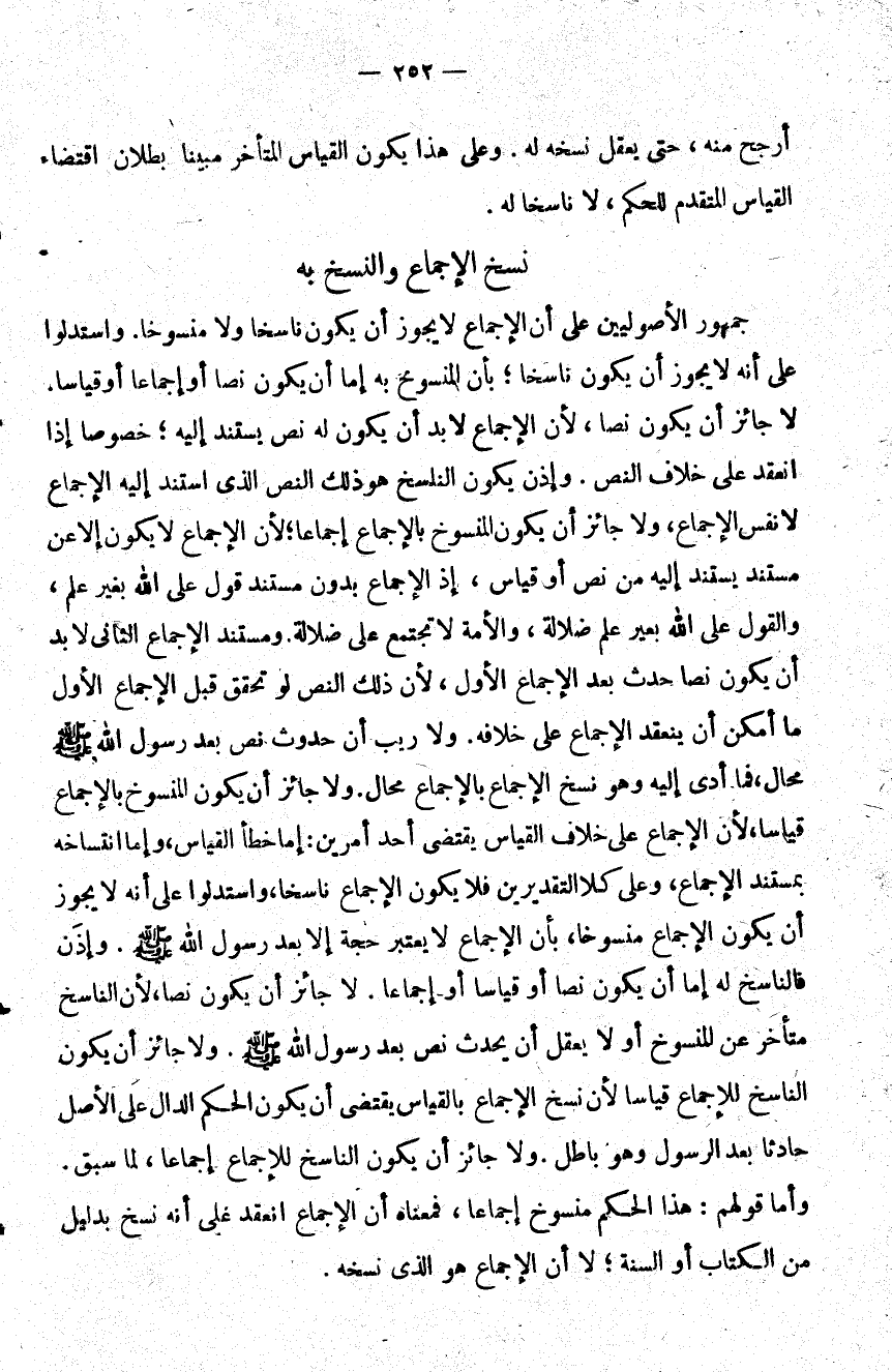 جمهور الأصوليين على أن الإجماع لا يجوز أن يكون ناسخا ولا منسوخا واستدلوا على أنه لا يجوز أن يكون ناسخا بأن المنسوخ به إ ما أن يكون نصا أو إجماعا أو قياسا لا جائز أن يكون نصا لأن الإجماع لا بد أن يكن له نص يستند إليه خصوصا إذا انعقد على خلاف النص وإذن يكون الناسخ هو ذلك النص الذي استند إليه الإجماع لا نفس الإجماع ولا جائز أن يكون المنسوخ بالإجماع إجماعا لأن الإجماع لا يكون إلا عن مستند يستند إليه من نص أو قياس إذ الإجماع بدون مستند قول على الله بغير علم والقول على الله بغير علم ضلالة والأمة لا تجتمع على ضلالة ومستند الإجماع الثاني لا بد أن يكون نصا حدث بعد الإجماع الأول لأن ذلك النص لو تحقق قبل الإجماع الأول ما أمكن أن ينعقد الإجماع على خلافه ولا ريب أن حدوث نص بعد رسول الله صلى الله عليه وسلم محال فما أدى إليه وهو نسخ الإجماع بالإجماع محال ولا جائز أن يكن المنسوخ بالإجماع قياسا لأن الإجماع على خلاف القياس يقتضي أحد أمرين إما خطأ القياس وإما انتساخه بمستند الإجماع وعلى كلا التقديرين فلا يكون الإجماع ناسخا واستدلوا على أنه لا يجوز أن يكون الإجماع منسوخا بأن الإجماع لا يعتبر حجة إلا بعد رسول الله صلى الله عليه وسلم وإذن فالناسخ له إما أن يكون نصا أو قياسا أو إجماعا لا جائز أن يكون نصا لأن الناسخ متأخر عن المنسوخ أو لا يعقل أن يحدث نص بعد رسول الله صلى الله عليه وسلم ولا جائز أن يكون الناسخ للإجماع قياسا لأن نسخ الإجماع بالقياس يقتضي أن يكون الحكم الدال على الأصل حادثا بعد الرسول وهو باطل ولا جائز أن يكون الناسخ للإجماع إجماعا لما سبق وأما قولهم هذا الحكم منسوخ إجماعا فمعناه أن الإجماع انعقد على أنه نسخ بدليل من الكتاب أو السنة لا أن الإجماع هو الذي نسخه.