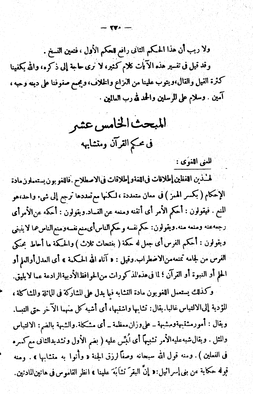 المبحث الخامس عشر في محكم القرآن ومتشابهه