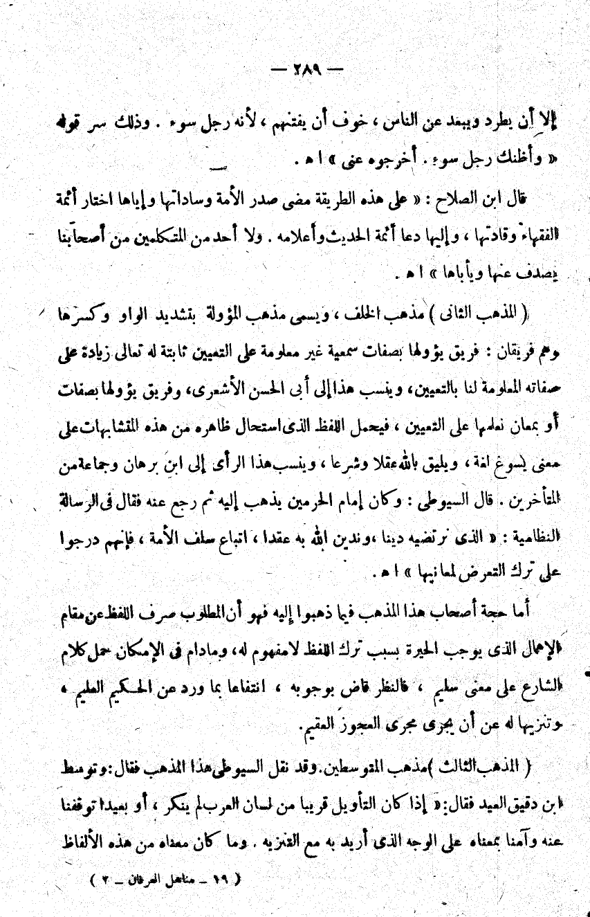 قال ابن الصلاح على هذه الطريقة مضى صدر الأمة وساداتها وإياها اختار أئمة الفقهاء وقادتها وإليها دعا أئمة الحديث وأعلامه ولا أحد من المتكلمين من أصحابنا يصدف عنها ويأباها اهـ.