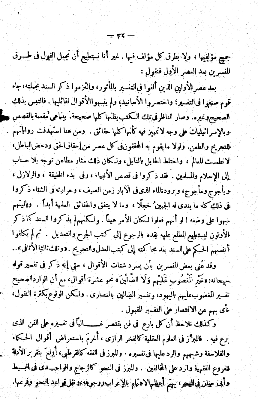 بعد عصر الأولين الذين ألفوا في التفسير بالمأثور والتزموا ذكر السند بجملته جاء قوم صنفوا في التفسير واختصروا الأسانيد ولم ينسبوا الأقوال لقائليها فالتبس بذلك الصحيح وغيره وصار الناظر في تلك الكتب يظنها كلها صحيحة بينما هي مفعمة بالقصص وبالإسرائيليات على وجه لا تمييز فيه كأنها كلها حقائق ومن هنا استهدفت رواياتهم للتجريح والطعن ولولا ما يقوم به المحققون في كل عصر من إحقاق الحق ودحض الباطل لانطمست المعالم واختلط الحابل بالنابل ولكان ذلك مثار مطاعن توجه بلا حساب إلى الإسلام والمسلمين فقد ذكروا في قصص الأنبياء وفي بدء الخليقة والزلازل ويأجوج ومأجوج وبرودة الماء الذي في الآبار زمن الصيف وحرارته في الشتاء ذكروا في ذلك كله ما يندى له الجبين خجلا وما لا يتفق والحقائق العلمية أبدا ويا ليتهم نبهوا على وضعه لو أنهم فعلوا لكان الأمر هينا ولكنهم لم يذكروا السند كما ذكر الأولون ليستطيع المطلع عليه نقده بالرجوع إلى كتب الجرح والتعديل ثم لم يكلفوا أنفسهم الحكم على السند بعد محاكمته إلى كتب العدل والتجريح وتلك ثالثة الأثافي.