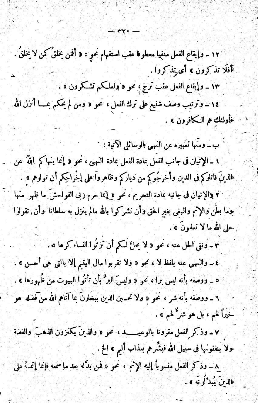 14 - وترتيب وصف شنيع على ترك الفعل نحو {وَمَنْ لَمْ يَحْكُمْ بِمَا أَنْزَلَ اللَّهُ فَأُولَئِكَ هُمُ الْكَافِرُونَ} .