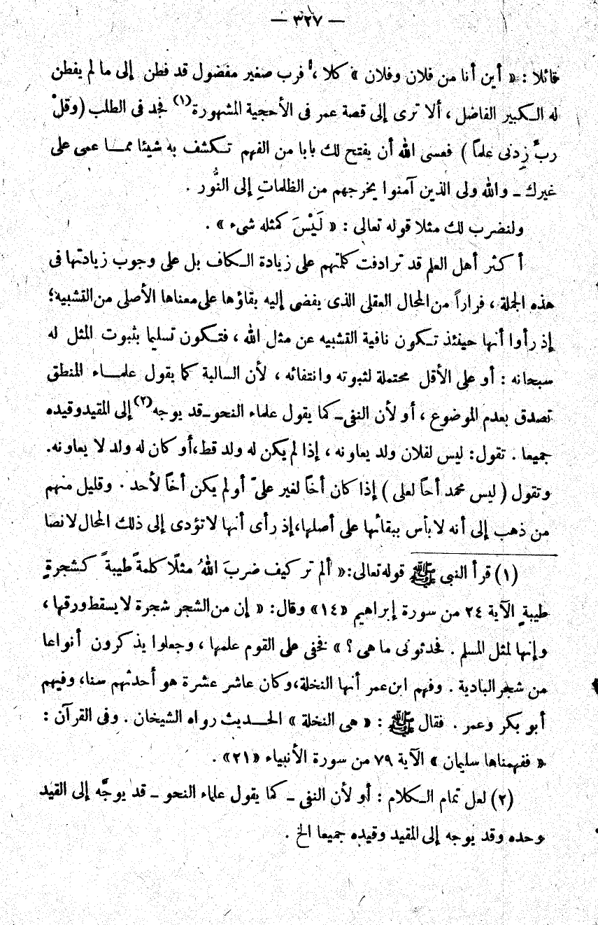 2 لعل تمام الكلام: أو ل، النفي – كما يقول علماء النحو – قد يوجه إلى القيد وحده وقد يوجه إلى المقيد وقيده جميعا إلخ.