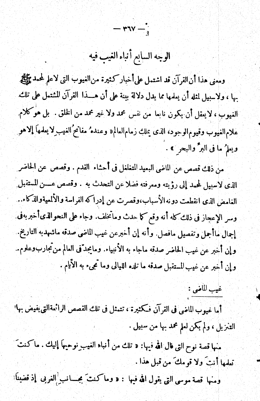 أما غيوب الماضي في القرآن فكثيرة تتمثل في تلك القصص الرائعة التي يفيض بها التنزيل ولم يكن لعلم محمد بها من سبيل.