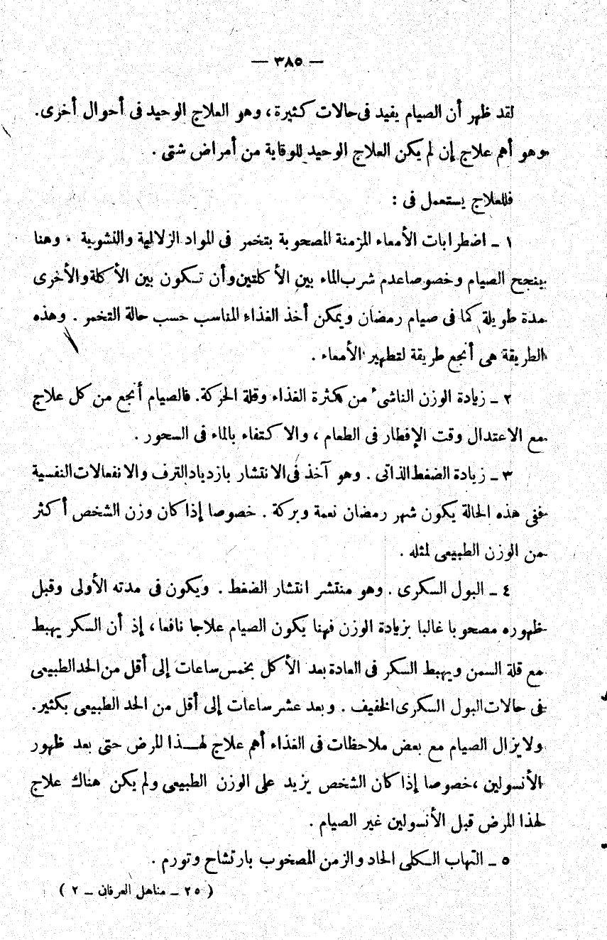 2 - زيادة الوزن الناشئ من كثرة الغذاء وقلة الحركة فالصيام أنجع من كل علاج مع الاعتدال وقت الإفطار في الطعام والاكتفاء بالماء في السحور.