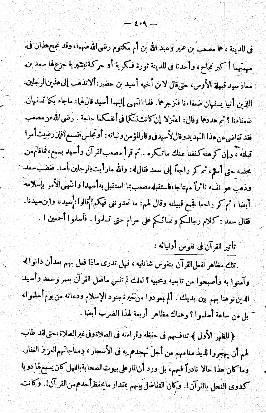 تلك مظاهر لفعل القرآن بنفوس شانئيه فهل تدري ماذا فعل بهم بعد أن دانوا له وآمنوا به وأصبحوا من تابعيه ومحبيه لعلك لم تنس ما فعل القرآن بعمر وسعد وأسيد الذين نوهنا بهم بين يديك ألم يعودوا من خيرة جنود الإسلام ودعاته من يوم أسلموا بل من ساعة أسلموا وهناك مظاهر أربعة لهذا الضرب أيضا.