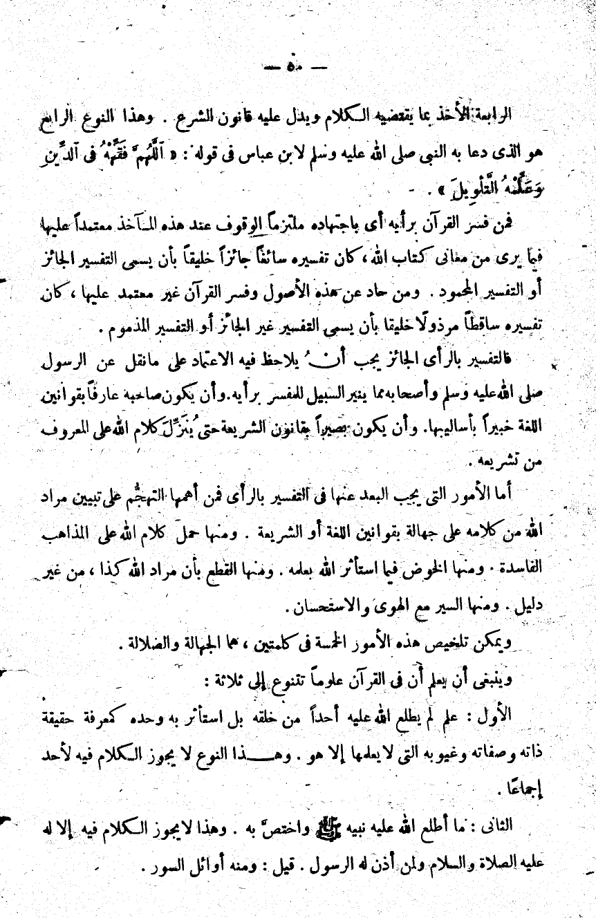 فمن فسر القرآن برأيه أي باجتهاده ملتزما الوقوف عند هذه المآخذ معتمدا عليها فيما يرى من معاني كتاب الله كان تفسيره سائغا جائزا خليقا بأن يسمى التفسير الجائز أو التفسير المحمود ومن حاد عن هذه الأصول وفسر القرآن غير معتمد عليها كان تفسيره ساقطا مرذولا خليقا بأن يسمى التفسير غير الجائز أو التفسير المذموم.