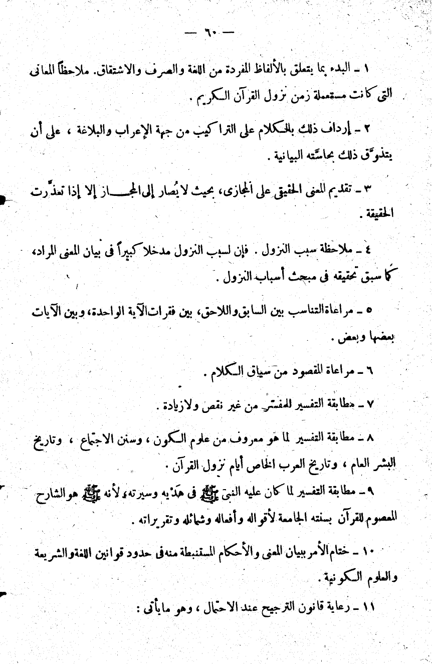 1 - البدء بما يتعلق بالألفاظ المفردة من اللغة والصرف والاشتقاق ملاحظا المعاني التي كانت مستعملة زمن نزول القرآن الكريم.