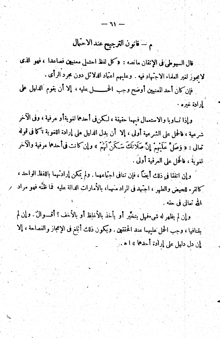 قال السيوطي في الإتقان ما نصه كل لفظ احتمل معنيين فصاعدا فهو الذي لا يجوز لغير العلماء الاجتهاد فيه وعليهم اعتماد الدلائل دون مجرد الرأي.