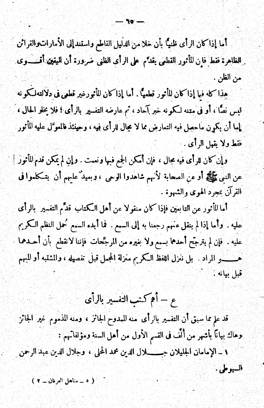 وإن كان للرأي فيه مجال فإن أمكن الجمع فبها ونعمت وإن لم يكن قدم المأثور عن النبي صلى الله عليه وسلم أو عن الصحابة لأنهم شاهدوا الوحي وبعيد عليهم ان يتكلموا في القرآن بمجرد الهوى والشهوة.