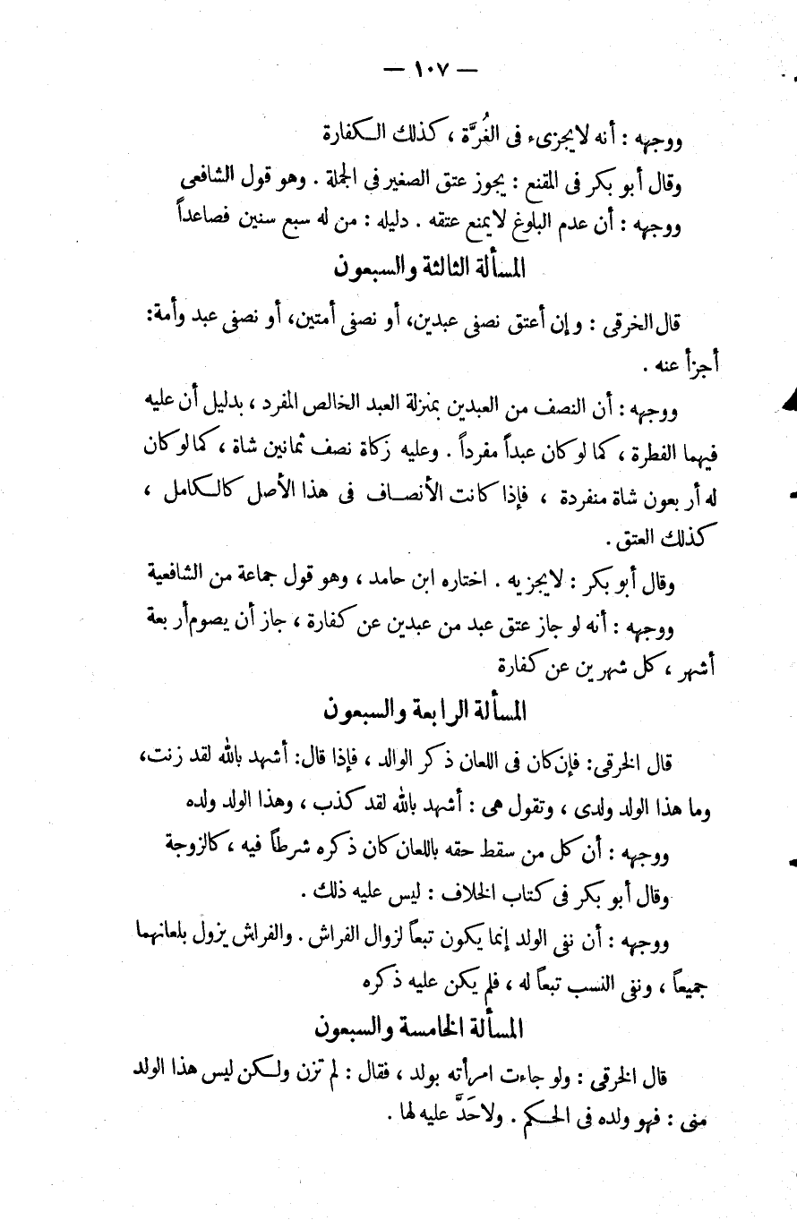 المسألة الثالثة والسبعون قَالَ الخرقي: وإن أعتق نصفي عبدين أو نصفي أمتين أو نصفي عبد وأمة أجزأ عَنْهُ.