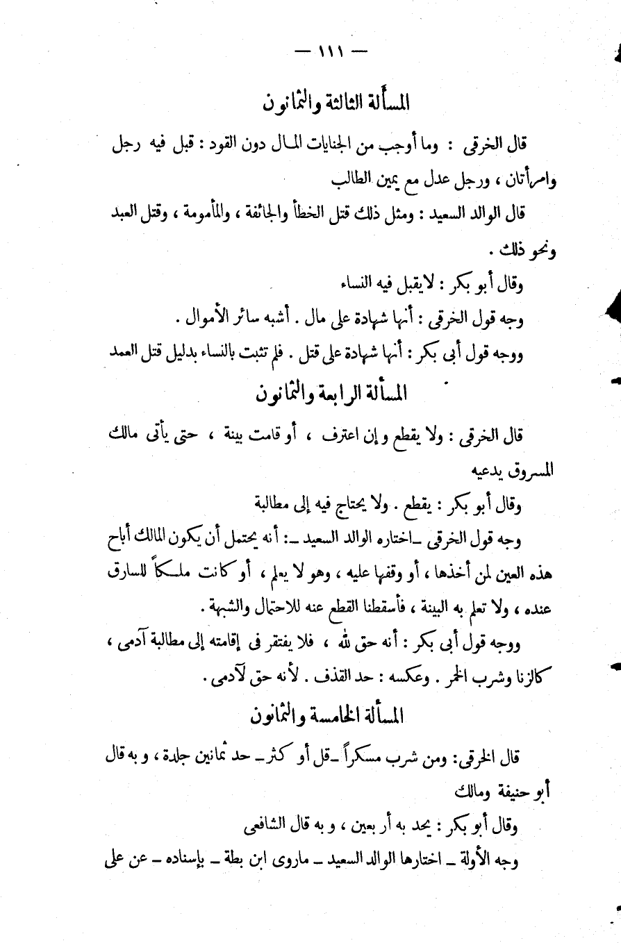 المسألة الثالثة والثمانون قال الخرقي: وما أوجب من الجنايات المال دون القود: قبل فِيهِ رجل وامرأتان ورجل عدل مَعَ يمين الطالب.