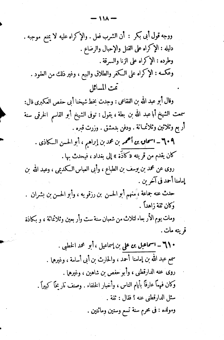 تمت المسائل وَقَالَ أَبُو عبد اللَّه بْن الفقاعي: وجدت بخط شيخنا أَبِي حفص العكبري قَالَ: سمعت الشيخ أبا عبد اللَّه بْن بطة يقول توفي الشيخ أَبُو القاسم الخرقي سنة أربع وثلاثين وثلاثمائة ودفن بدمشق وزرت قبره.