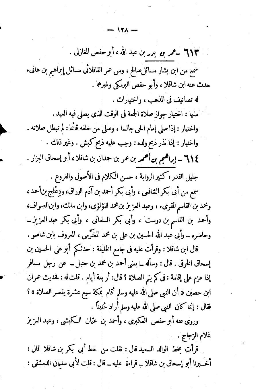 إبراهيم بْن أَحْمَد بْن عمر بْن حمدان بْن شاقلا أَبُو إسحاق البزار