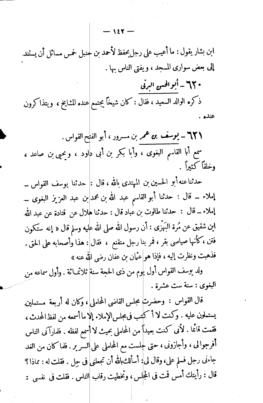 يوسف بْن عمر بْن مسرور أَبُو الفتح القواس سمع أبا القاسم البغوي وأبا بكر بْن أَبِي داود ويحيى بْن صاعد وخلقا كثيرا.