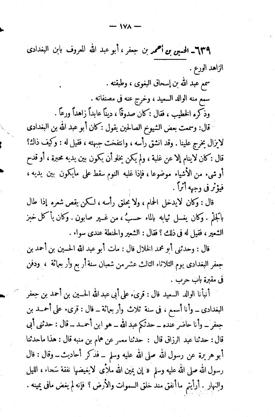 الحسين بْن أَحْمَد بْن جَعْفَر أَبُو عبد اللَّه المعروف بابْن البغدادي الزاهد الورع