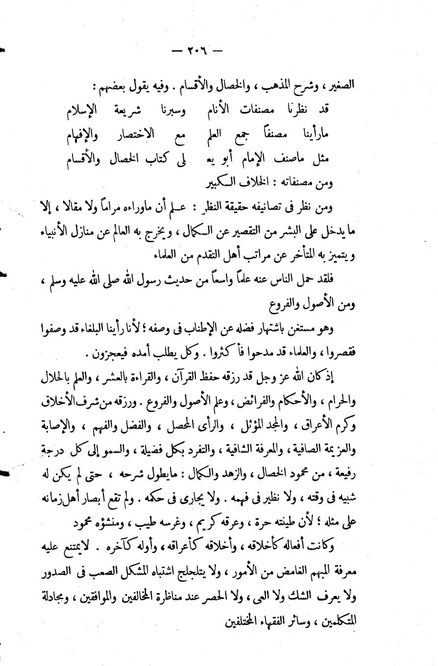 وهو مستغن باشتهار فضله عن الإطناب فِي وصفه لأنا رأينا البلغاء قد وصفوا فقصروا والعلماء قد مدحوا فأكثروا وكل يطلب أمده فيعجزون.
