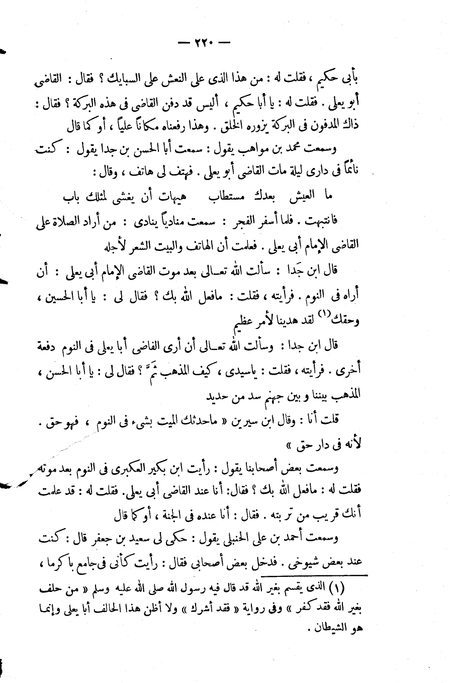 فانتبهت فلما أسفر الفجر سمعت مناديا ينادى من أراد الصلاة عَلَى القاضي الإمام أبى يعلى فعلمت أن الهاتف والبيت الشعر لأجله.
