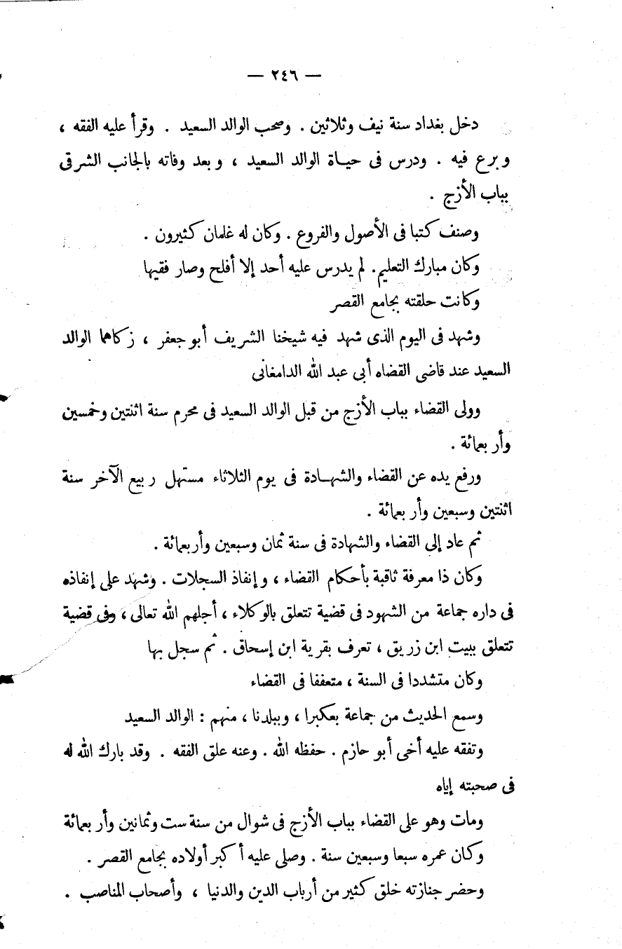 وشهد فِي اليوم الَّذِي شهد فِيهِ شيخنا الشريف أَبُو جَعْفَر زكاهما الوالد السعيد عند قاضي القضاة أَبِي عبد اللَّه الدامغاني.