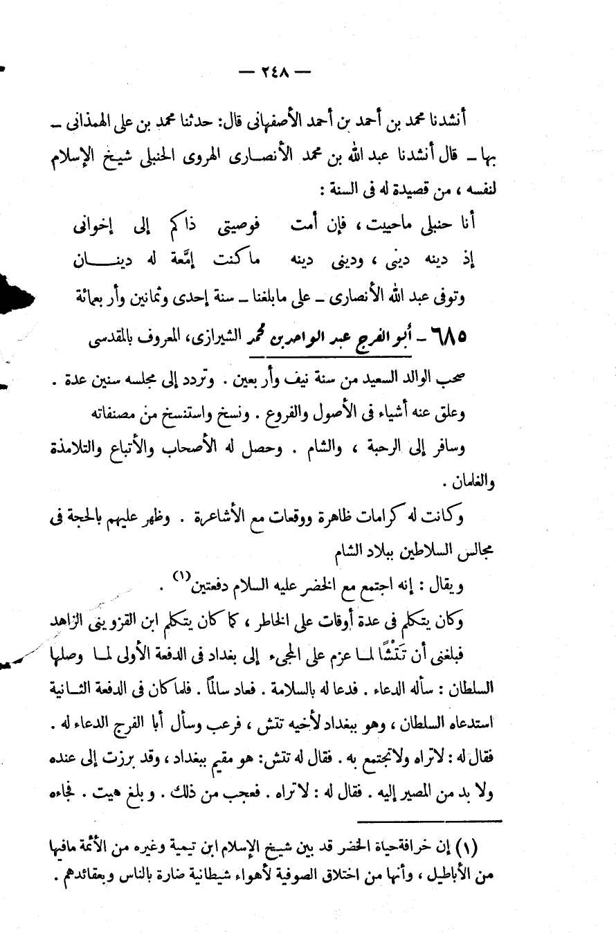 أَبُو الفرج عبد الواحد بْن مُحَمَّد الشيرازي المعروف بالمقدسي: