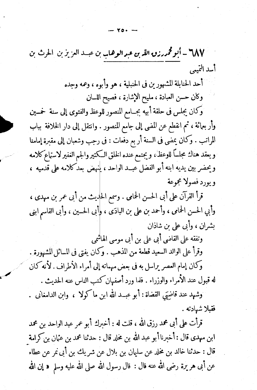 أَبُو مُحَمَّد رزق اللَّه بْن عبد الوهاب بْن عبد العزيز بْن الحرث بْن أسد التميمي:
