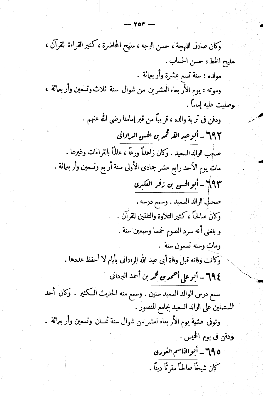 ٢ - أَبُو علي أَحْمَد بْن مُحَمَّد بْن أَحْمَد البرداني: سمع درس الوالد السعيد سنين وسمع مِنْهُ الحديث الكثير وَكَانَ أحد المستملين عَلَى الوالد السعيد بجامع المنصور.