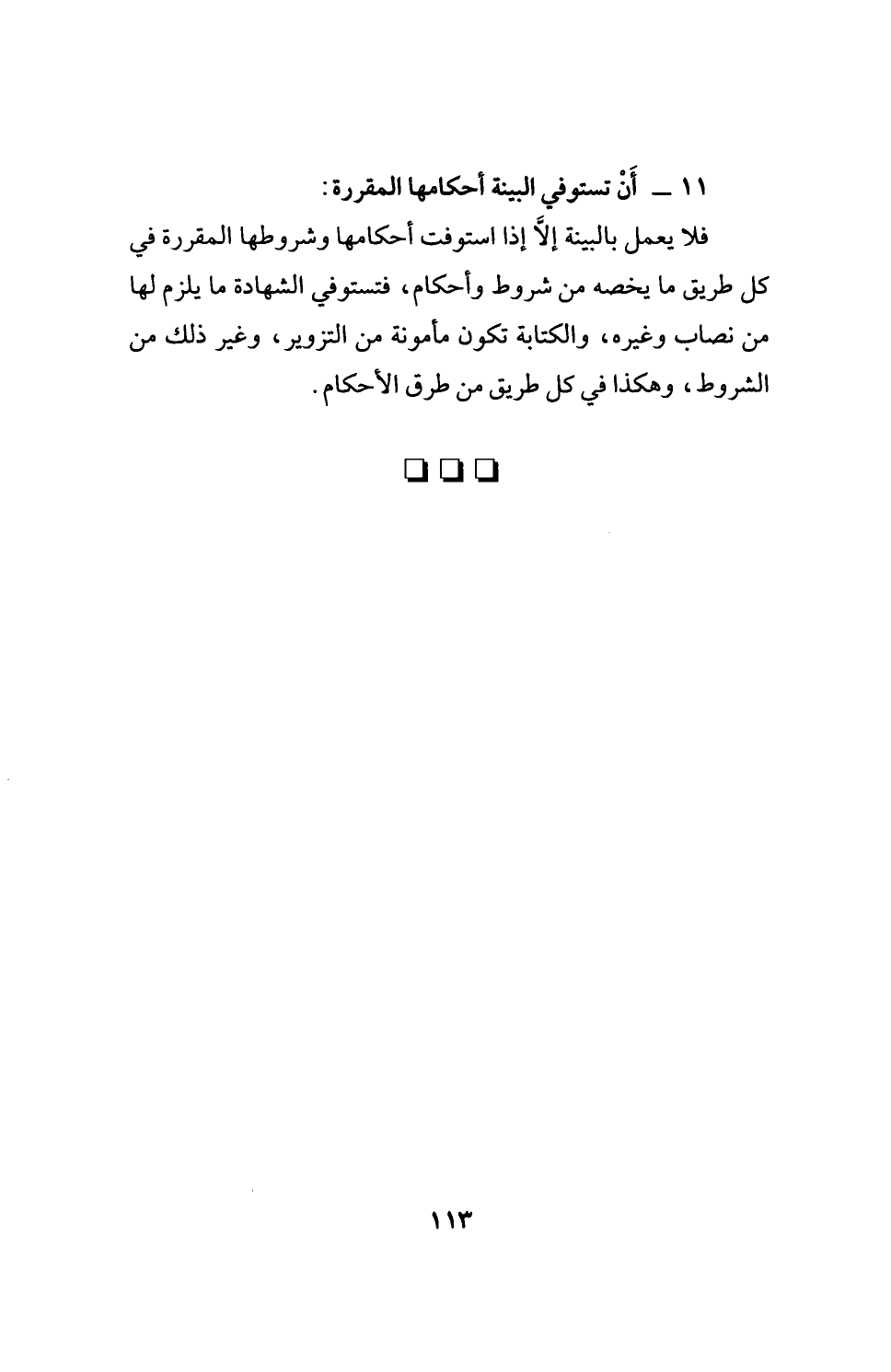11 - أَنْ تستوفي البينة أحكامها المقررة: