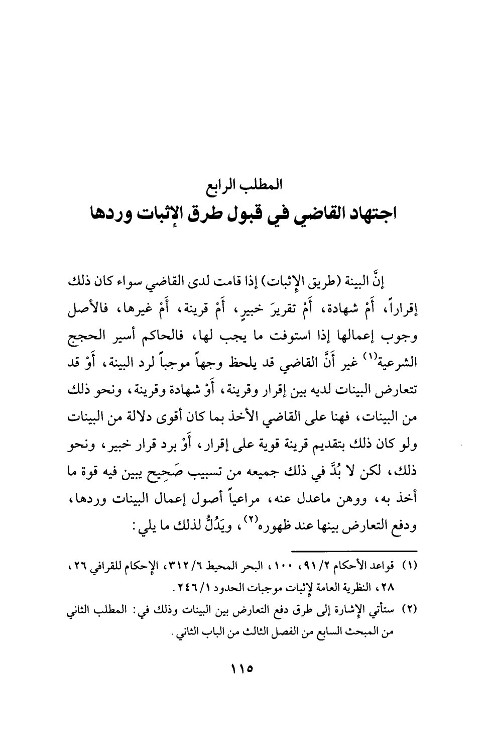 (¬2) ستأتي الإشارة إلى طرق دفع التعارض بين البينات وذلك في: المطلب الثاني من المبحث السابع من الفصل الثالث من الباب الثاني.