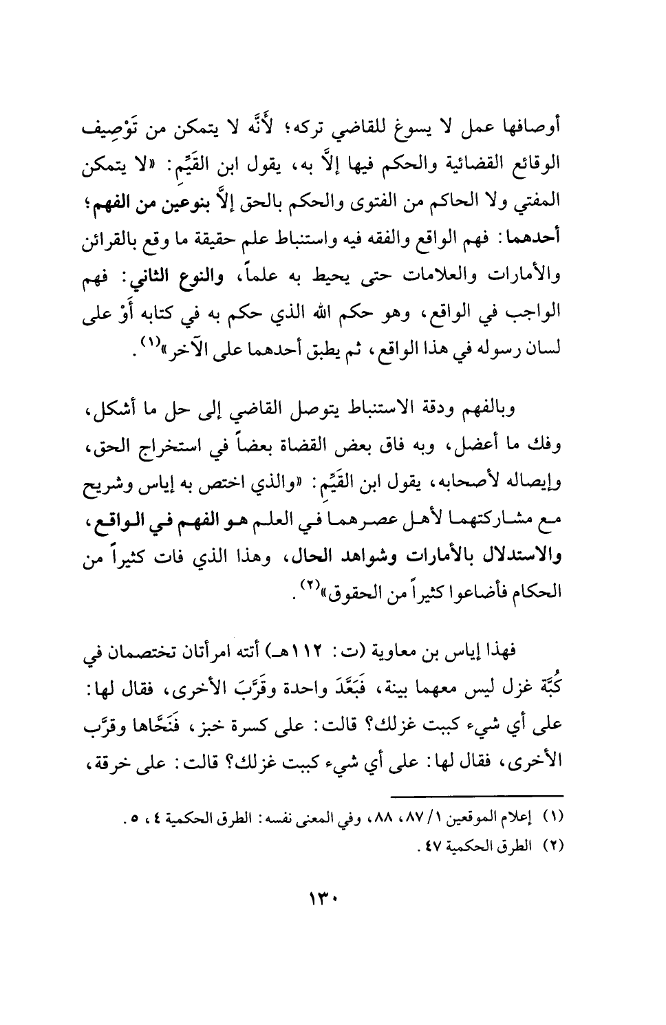 (¬1) إعلام الموقعين 1/ 87، 88، وفي المعنى نفسه: الطرق الحكمية 4، 5.