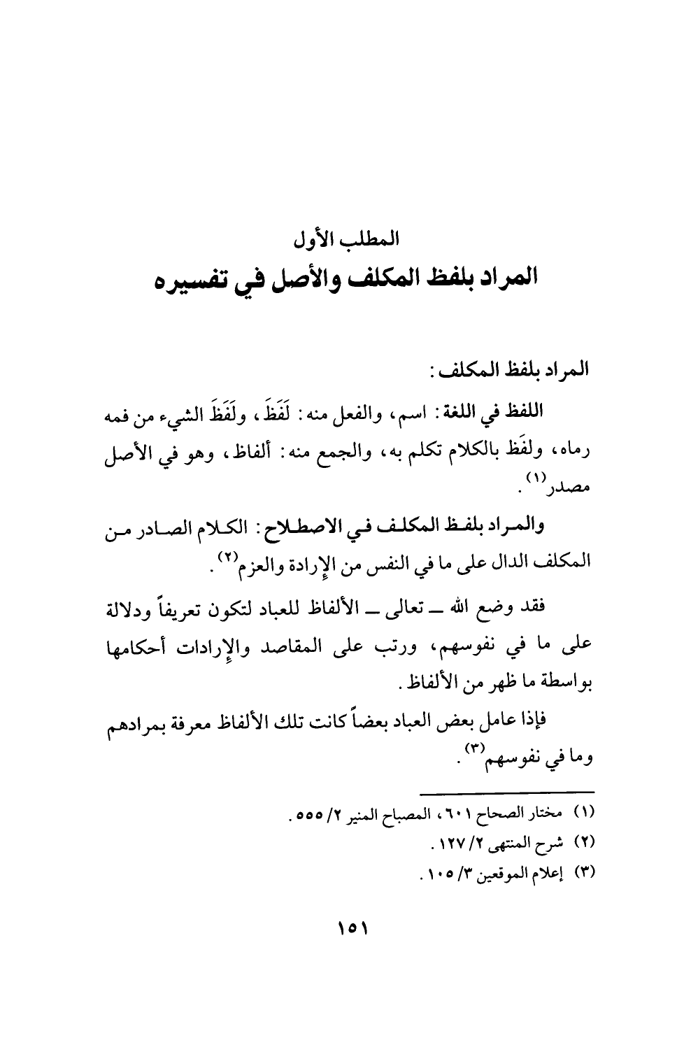 المطلب الأول المراد بلفظ المكلف والأصل في تفسيره