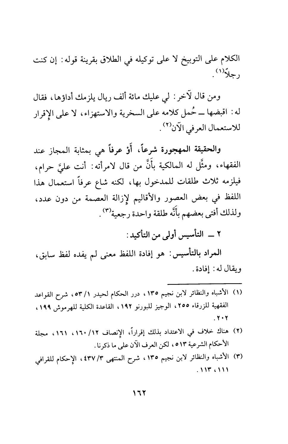 (¬3) الأشباه والنظائر لابن نجيم 135، شرح المنتهى 3/ 437، الإحكام للقرافي 111، 113.