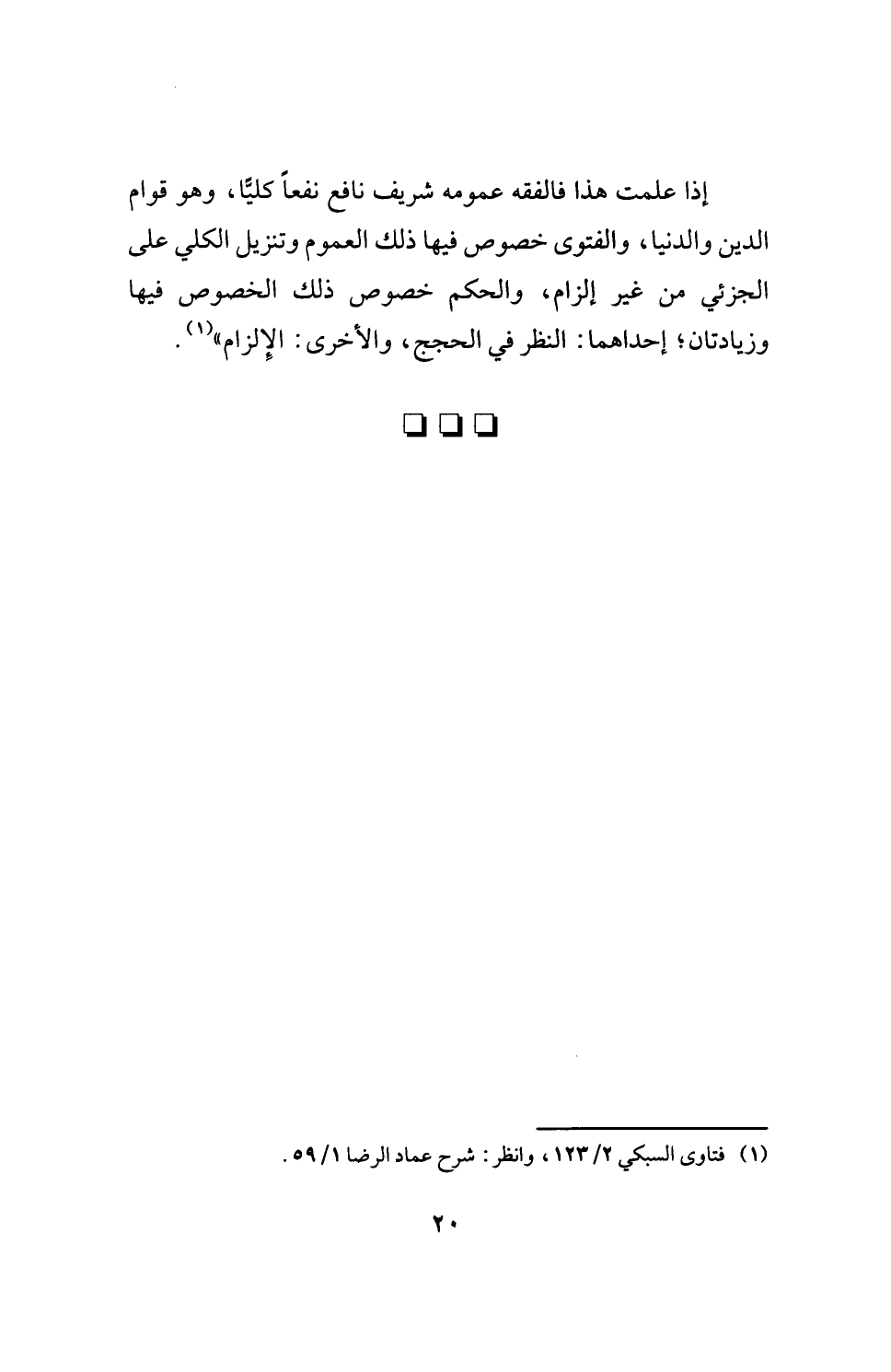 (¬1) فتاوى السبكي 2/ 123، وانظر: شرح عماد الرضا 1/ 59.