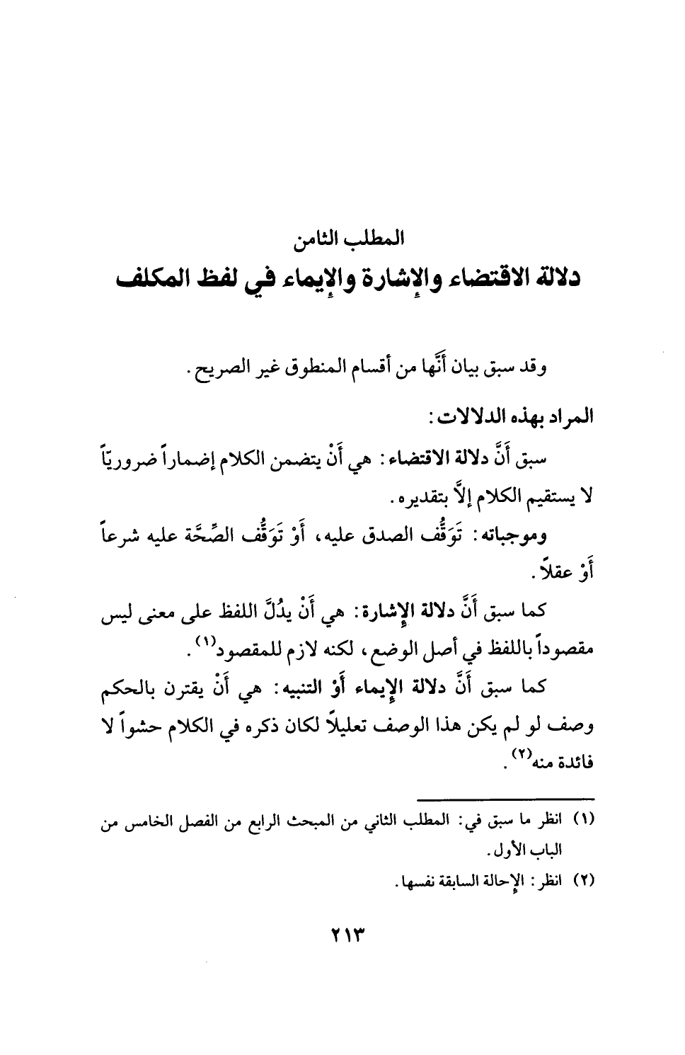 المطلب الثامن دلالة الاقتضاء والإِشارة والإِيماء في لفظ المكلف