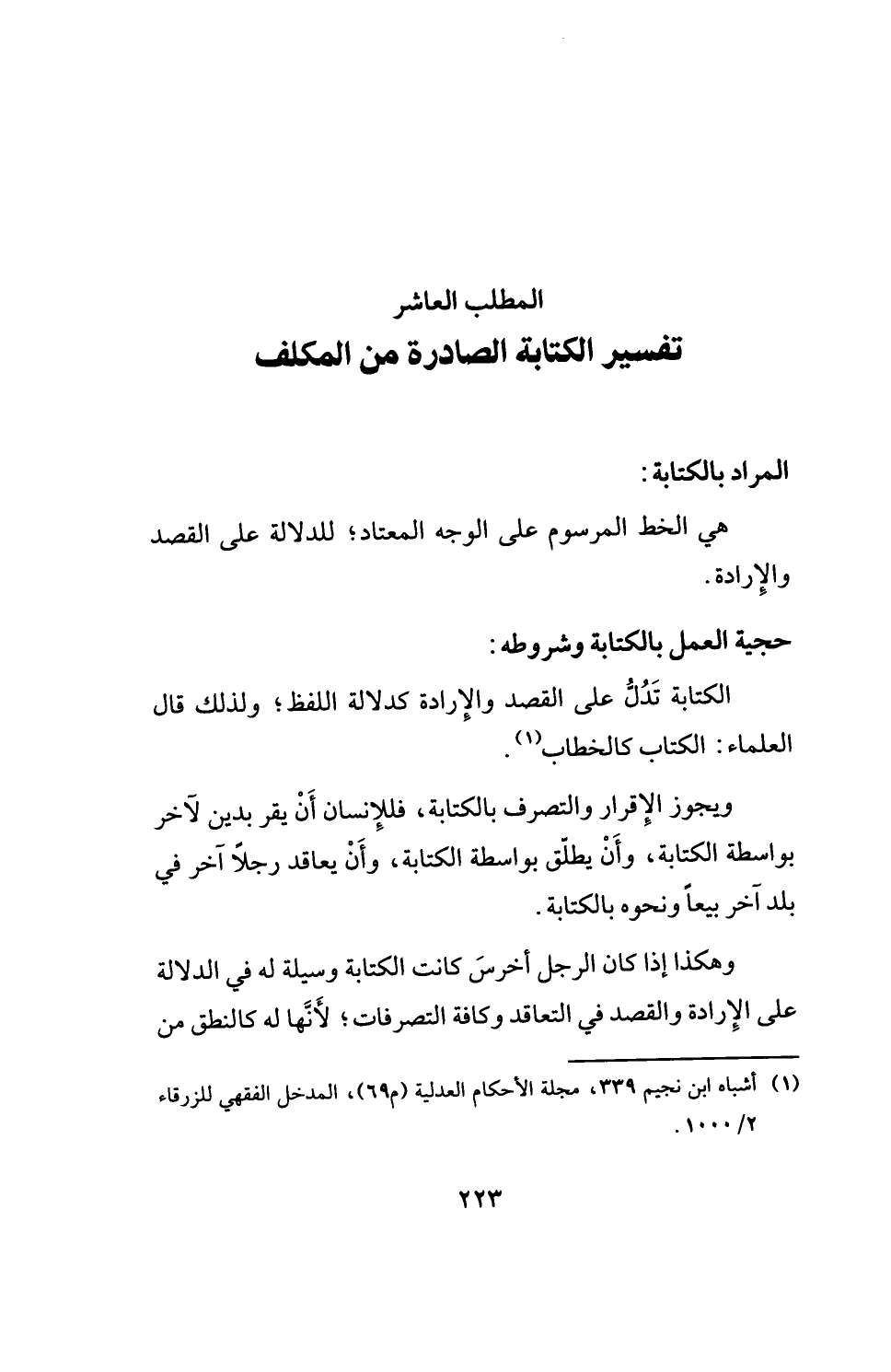 المطلب العاشر تفسير الكتابة الصادرة من المكلف