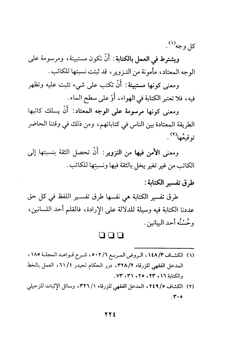(¬1) الكشاف 3/ 148، الروض المربع 6/ 502، شرح قواعد المجلة 185، المدخل الفقهي للزرقاء 2/ 328، درر الحكام لحيدر 1/ 61، العمل بالخط والكتابة 16, 23, 25, 31, 73.