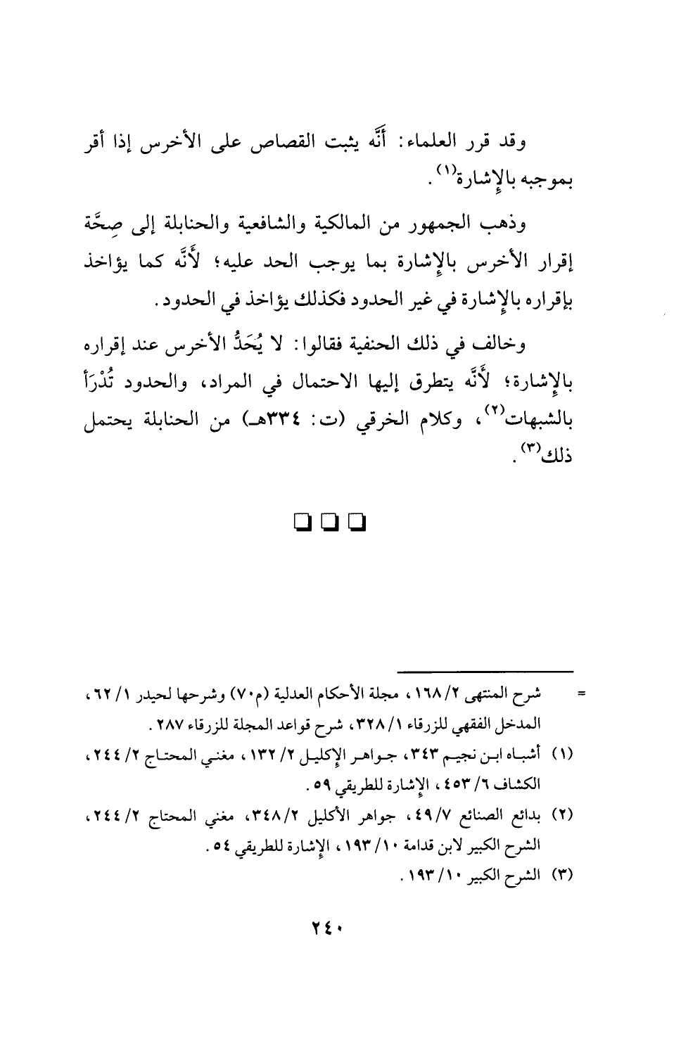 (¬1) أشباه ابن نجيم 343، جواهر الإِكليل 2/ 132، مغني المحتاج 2/ 244، الكشاف 6/ 453، الإِشارة للطريقي 59.
