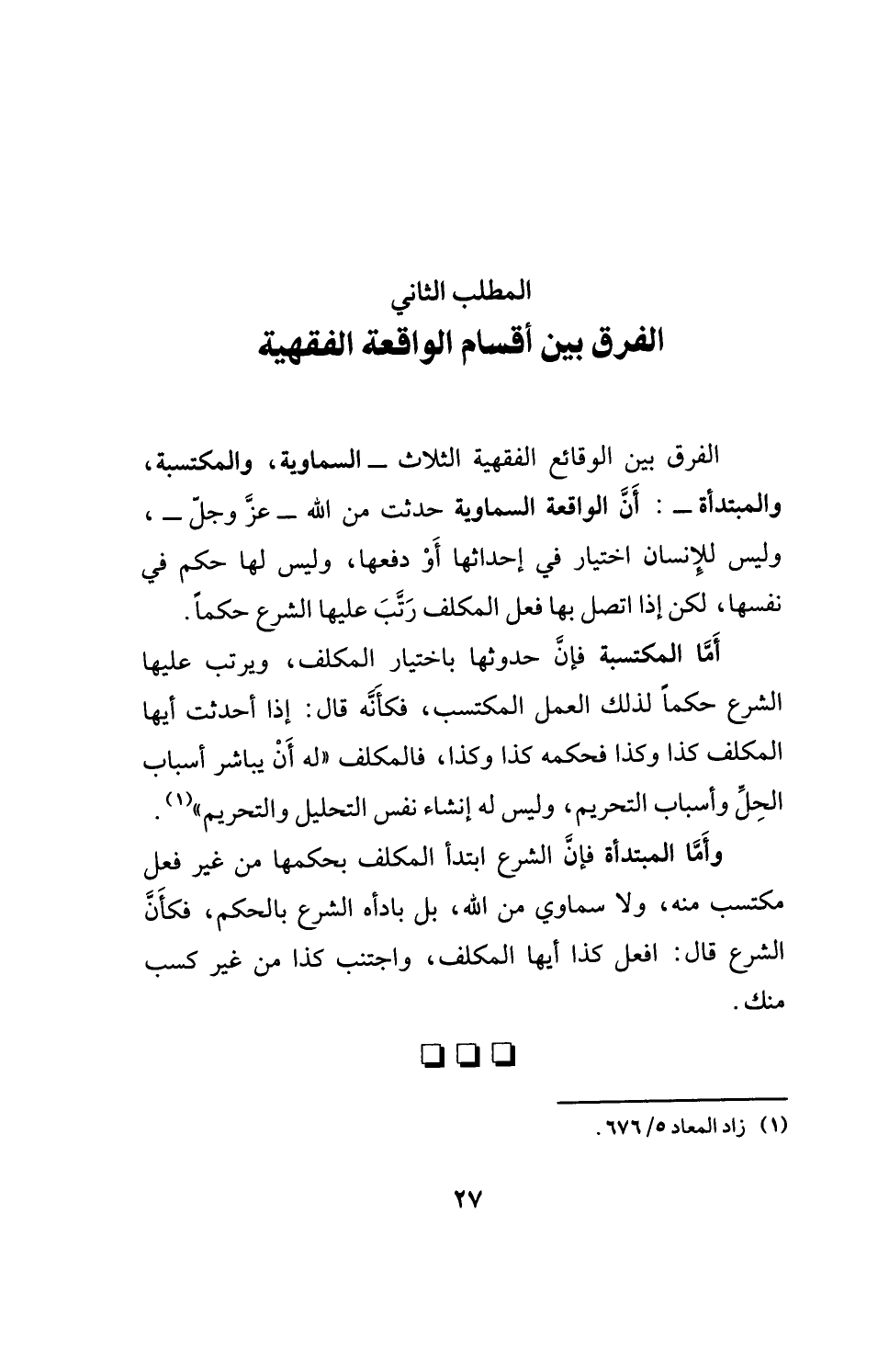 المطلب الثاني الفرق بين أقسام الواقعة الفقهية