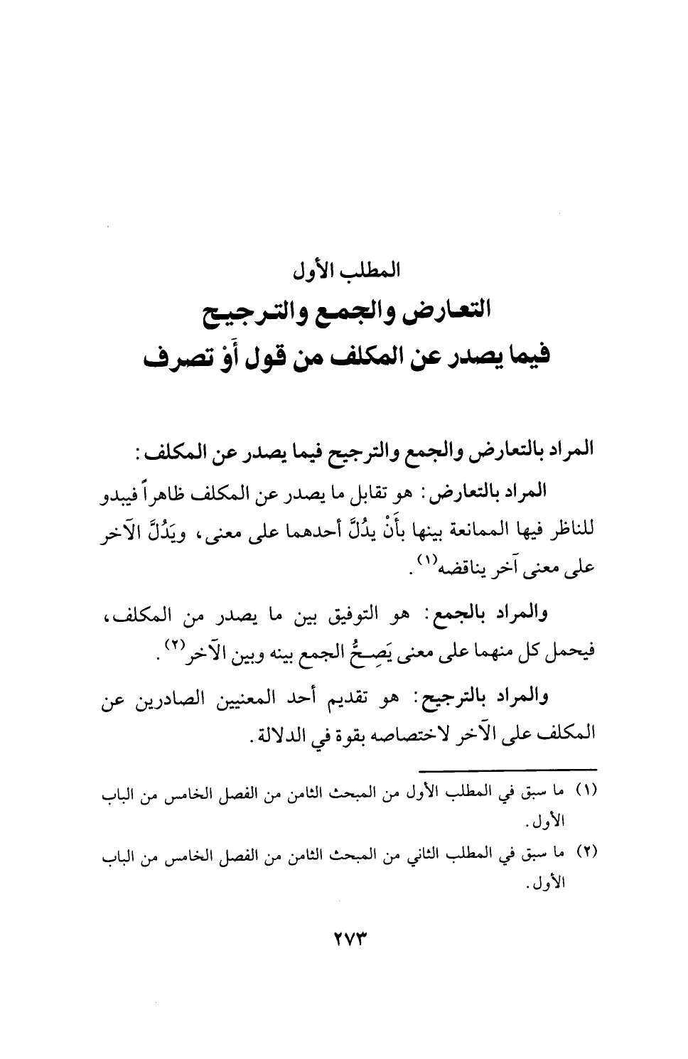 المطلب الأول التعارض والجمع والترجيح فيما يصدر عن المكلف من قول أوْ تصرف