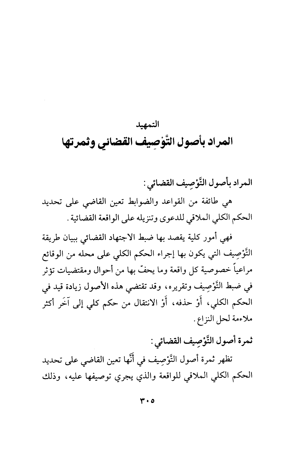 التمهيد المراد بأصول التَّوْصِيف القضائي وثمرتها
