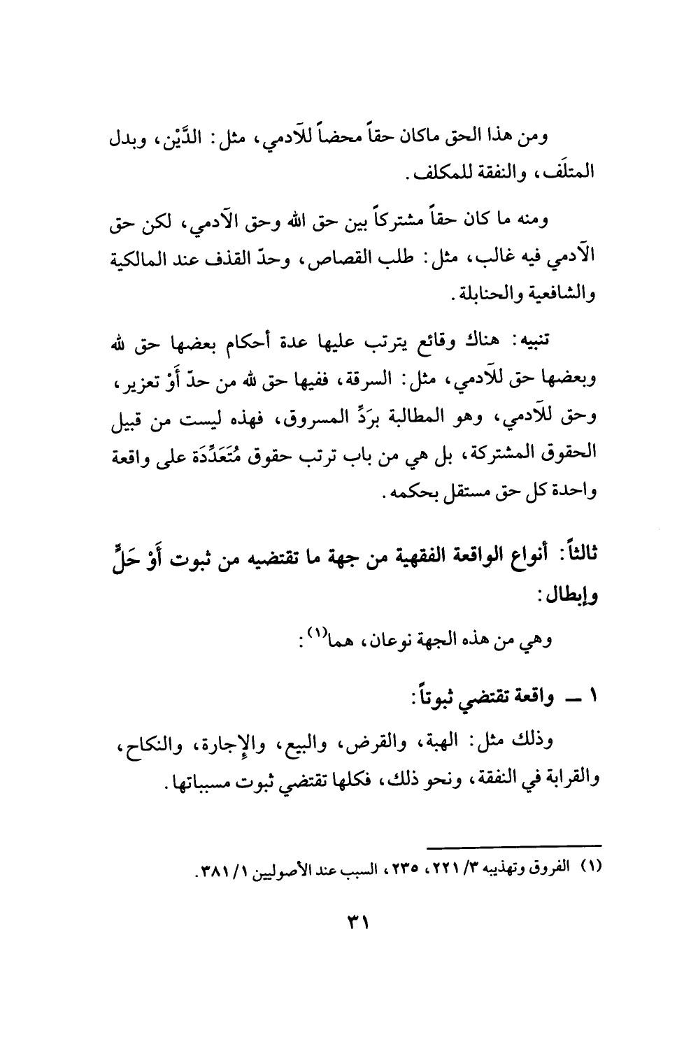 (¬1) الفروق وتهذيبه 3/ 221، 235، السبب عند الأصوليين 1/ 381.